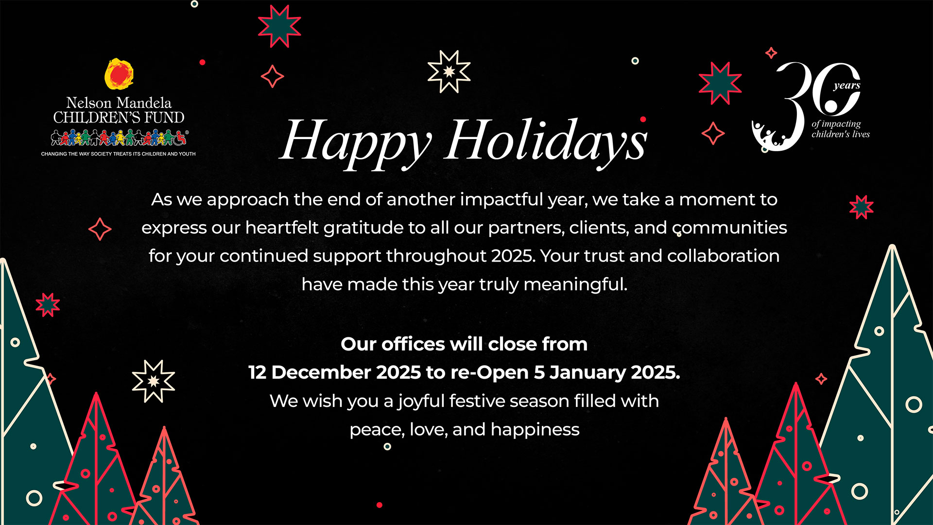 The Nelson Mandela Children’s Fund will be taking a festive season break from 12 December to 5 January.