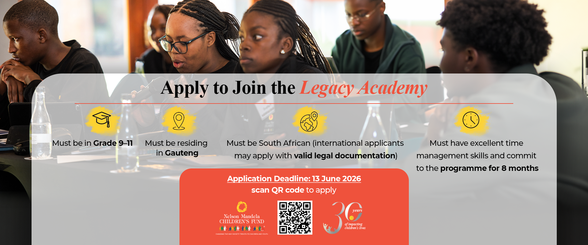 🌱 The Legacy Academy Applications Are Now Open. We are looking for young leaders passionate about children’s rights and driving social change in South Africa.